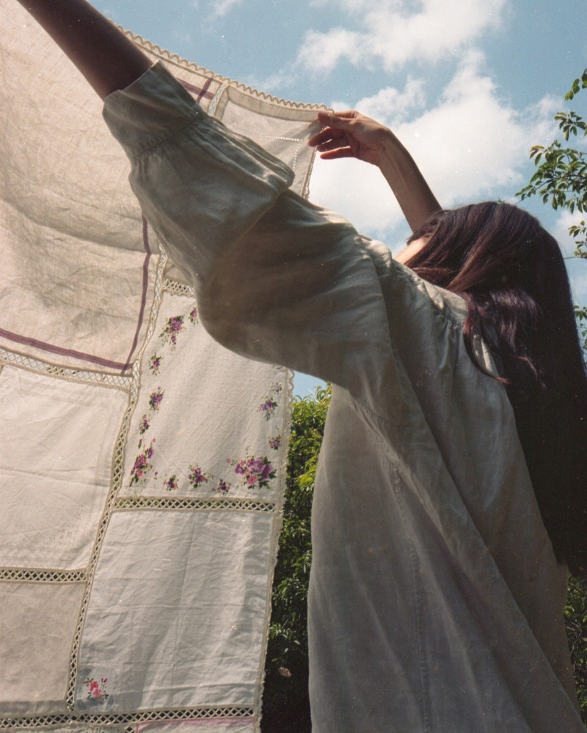Maison Flore is a sustainable and independant house, celebrating the art of French Trousseau tradition and intergenerational transmission through upcycled, feminine and timeless ready-to-wear and home linen collections.
