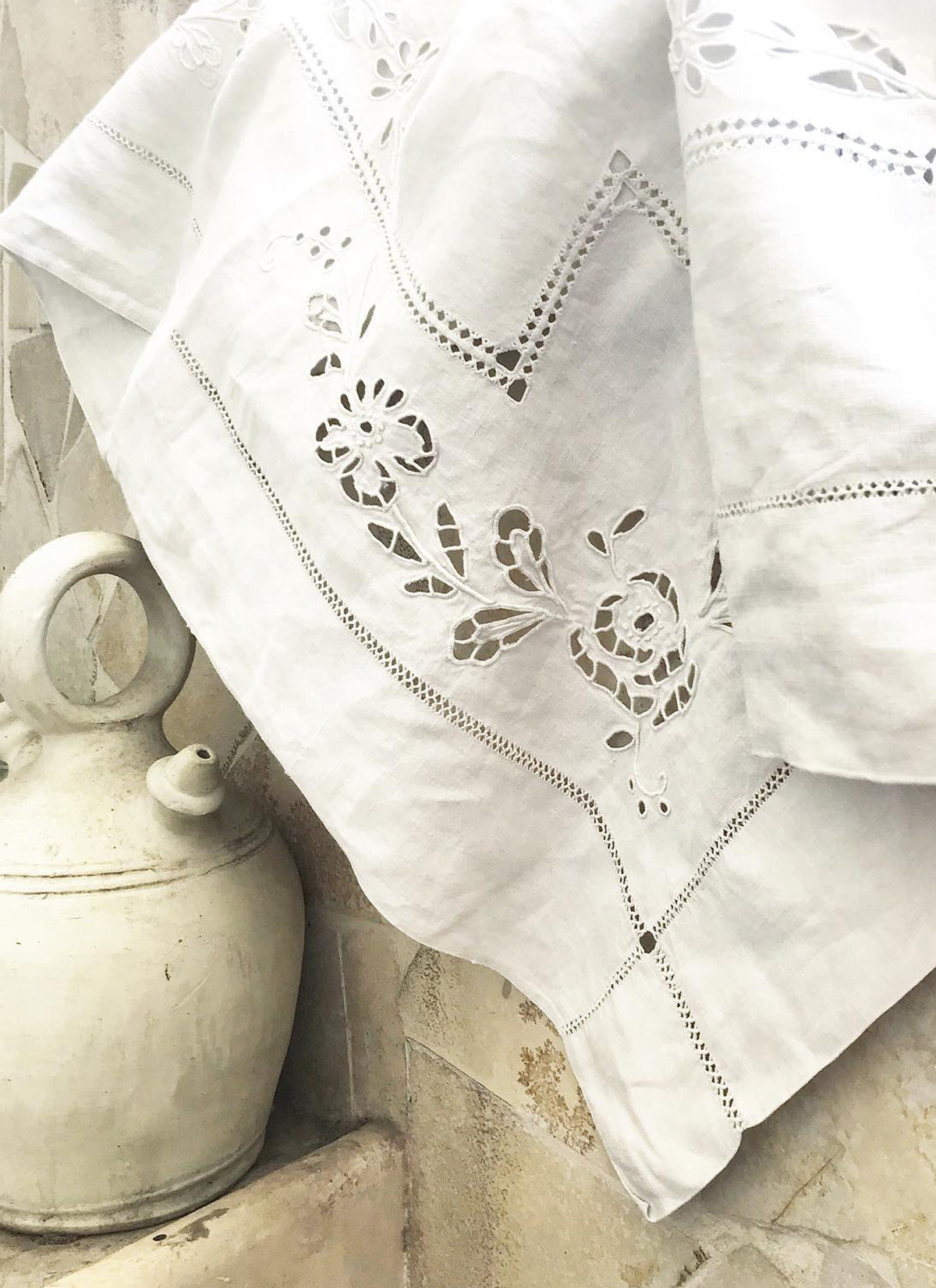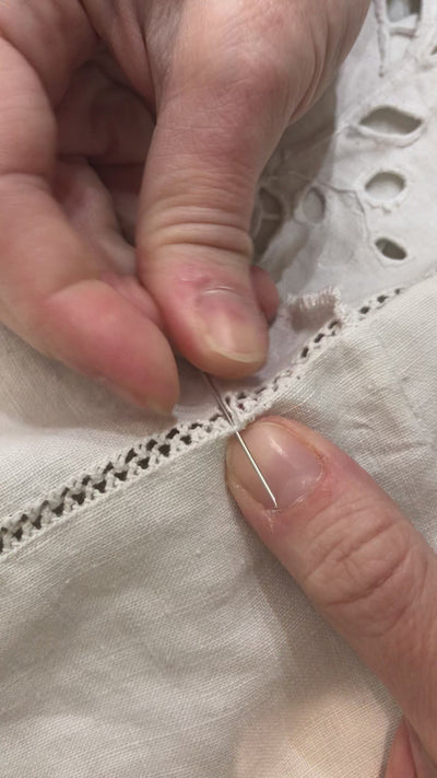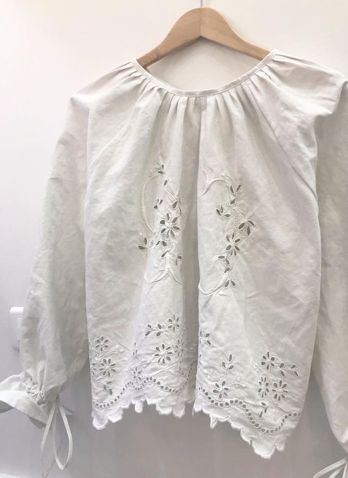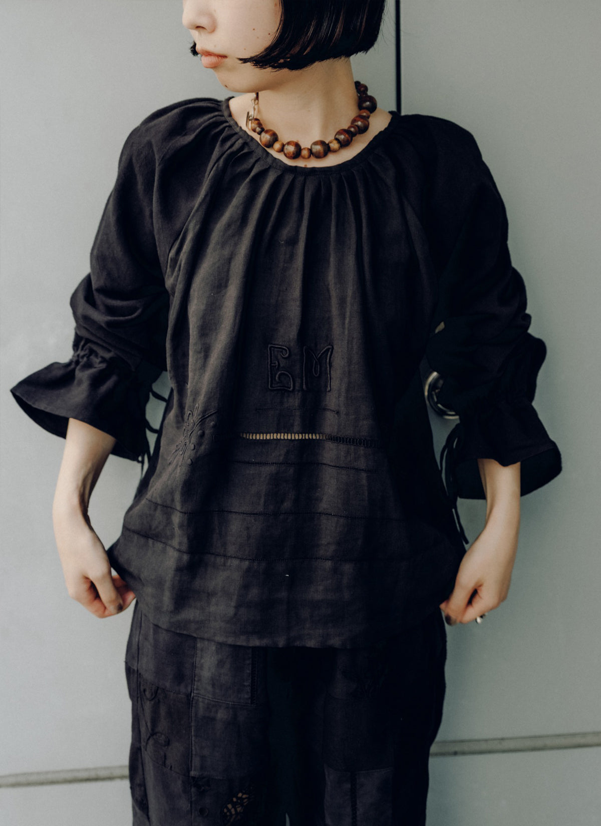 Blouse made of antique hand-embroidered linen, carrying a piece of french embroidery history : A living heirloom to be worn, celebrated, and passed on as heritage."